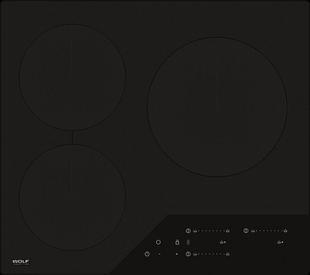 Inductiekookplaat met drie kookzones plus brugzone in Contemporary design.