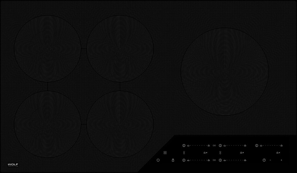 Inductiekookplaat met vijf kookzones plus verschillende brugzones in Contemporary design.